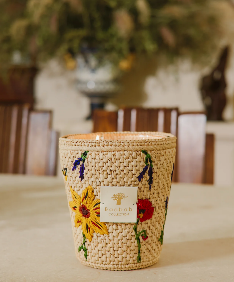 Brodée à la main par notre coopérative de femmes à Madagascar, la bougie parfumée Ahitra est habillée de raphia naturel orné de fleurs colorées. Chaque point visible témoigne de longues heures de travail, où les artisanes interprètent la lavande, les tournesols et les coquelicots avec une grâce spontanée. Une bougie apaisante et identitaire, qui rappelle la sérénité d’un sentier bordé d’herbes folles.